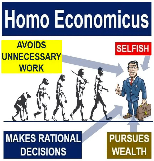 සම්ප්රදායික ආර්ථික විද්යා දැක්මට අනුව ආත්මාර්ථකාමී වීම (self-interested) මිනිසුන්ගේ අනිවාර්ය ගති ලක්ෂණයකි. බොහෝ ආර්ථික විග්රහවලට අනුව පුද්ගල චර්යාව මෙහෙයවෙන්නේ “තෘෂ්ණාවේ දැවැන්ත බලවේග” වලිනි. ආර්ථික ක්රම පිළිබඳ ආදර්ශනවල දී මිනිස් ක්රියාකාරිකයන් නිරූපණය කරන්නේ ‘බොරු කීම, සොරකම සහ රැවටීම වැනි නිහීන ක්රියා කරන, බොහෝ විට සියුම් ක්රම මඟින් වංචා කරන්නන්” ලෙස ය. [4]