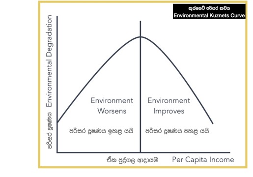 ආර්ථික වර්ධනය ඉහළ යන විට ඉහළ යන පරිසර දූෂණය පසුව සමනය වෙතැ’යි යන ඇදහිල්ල ඉන්දියාවට ආදේශ කළ ලෝක බැංකුවේ ජ්යෙෂ්ඨ පරිසර ආර්ථික විද්යාඥයෙකු වන මුතුකුමාර මානි “ගත වූ වසර ගණනාව තුළ ආර්ථික වසයෙන් ඉන්දියාව විශිෂ්ට කාර්ය සාධනයක් පෙන්නුම් කර ඇති නමුත් පරිසරය සම්බන්ධයෙන් නම් ඒ බවක් නො පෙන්වයි. දැන් වර්ධනයට ඉඩ දී පසුව පිරිසිදු කරමු යන්න ඇත්ත වසයෙන් ම සිදු වන දෙයක් නො වේ.”[2] යනුවෙන් සඳහන් කරයි.